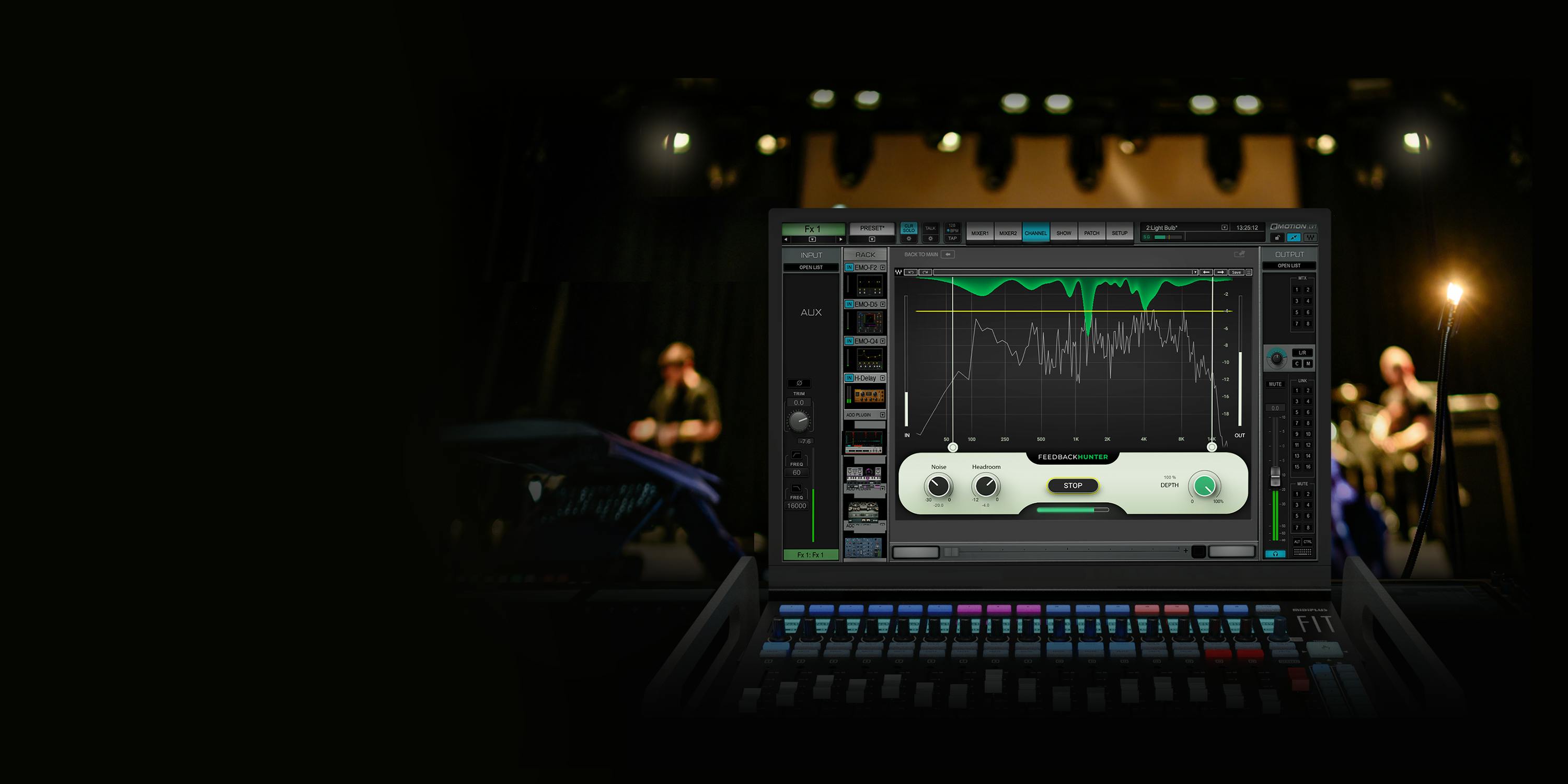 Feedback Hunter evaluates the mic-speaker interactions using white noise, fine-tuning its feedback control to your specific acoustic environment.