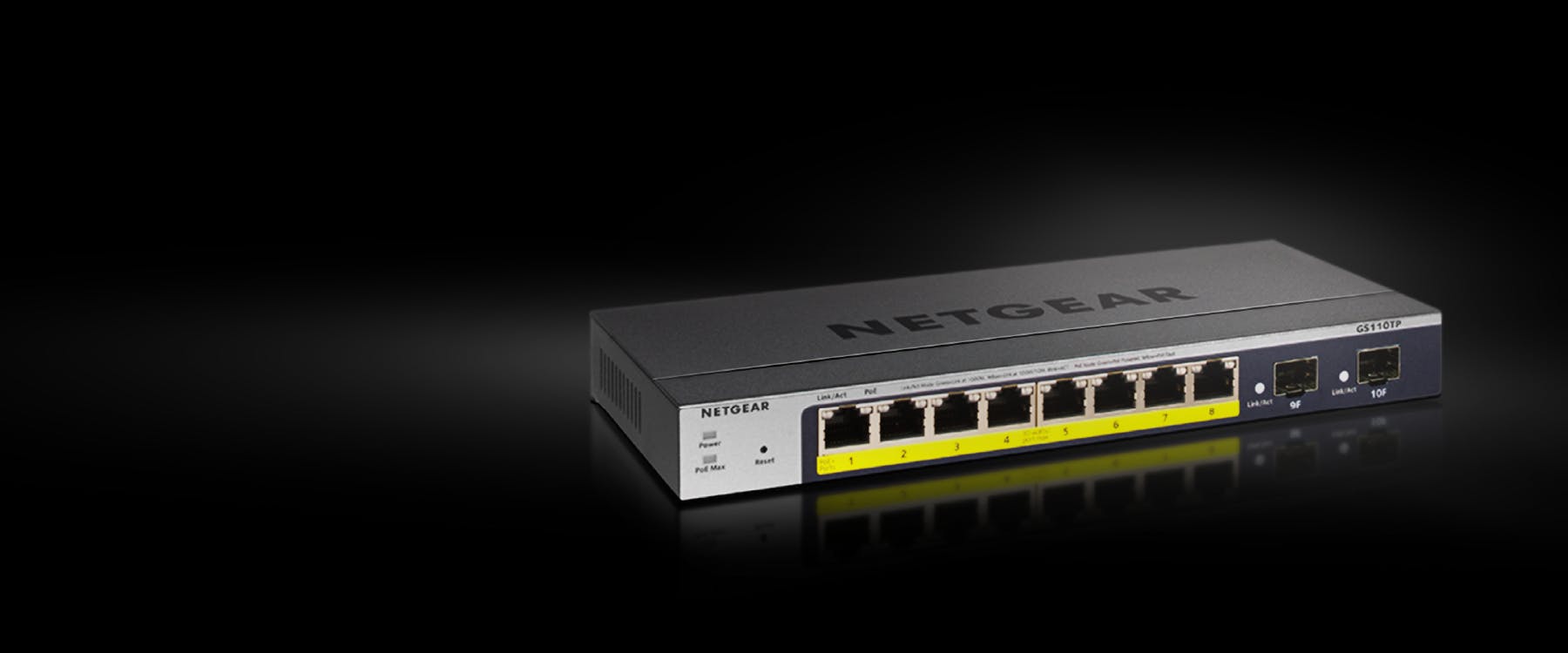With a fanless design that’s crucial for noise-sensitive environments, the GS110TPv3 comes with eight RJ45 PoE Gigabit Ethernet ports and two SFP fiber-capable ports, in a rugged metal case.