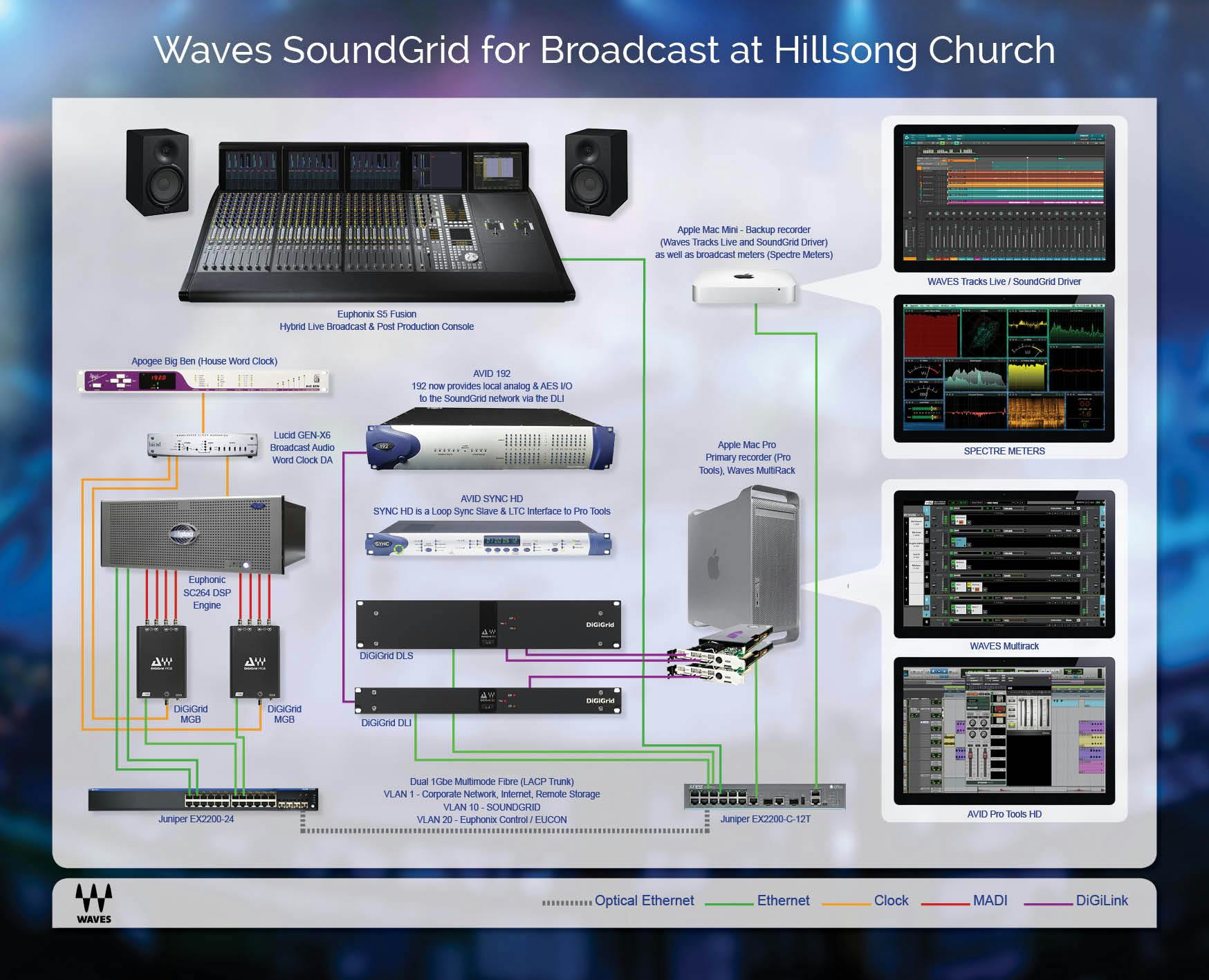 Learn how Hillsong Church enhances its live sound, broadcast and post-production capabilities by using Waves SoundGrid audio processing and networking.