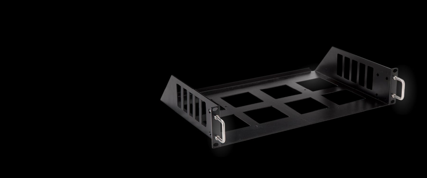 In addition to sturdy, all-metal construction, black matte screws are included for mounting a SoundGrid Impact Server-C to the tray’s underside, and metallic screws for mounting to the sides.