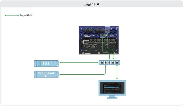 Connect the host computer running SuperRack SoundGrid to Engine B’s Black Switch.