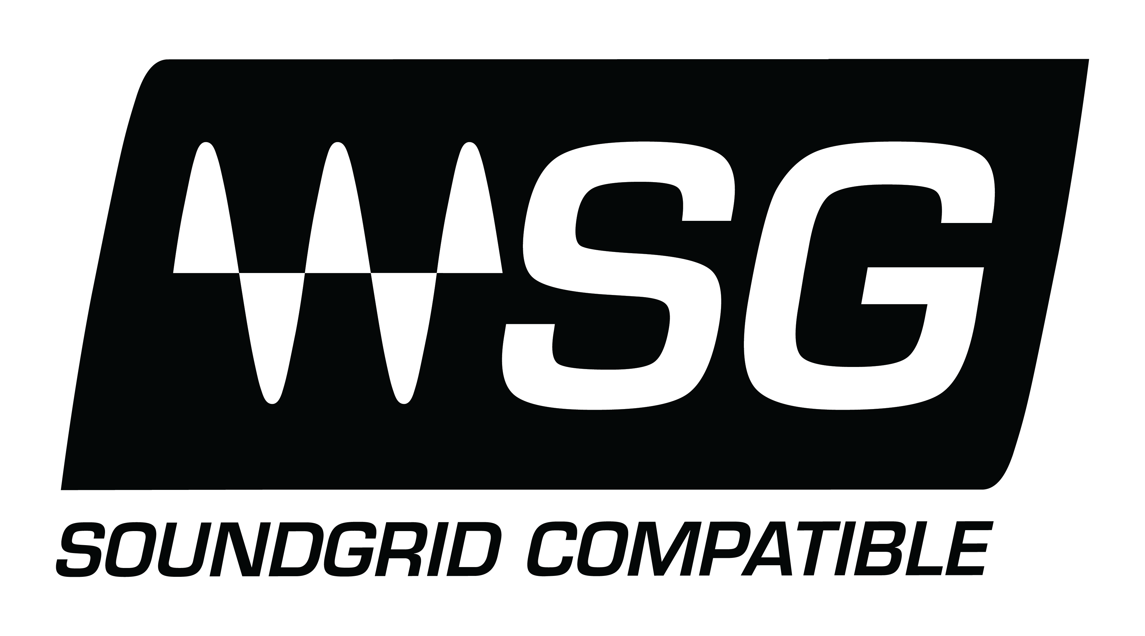 The SoundGrid Compatible logo may appear in primary or secondary color format only — black and white — on a contrasting background. The logo should not appear in other colors, single-color, or strokes-only.